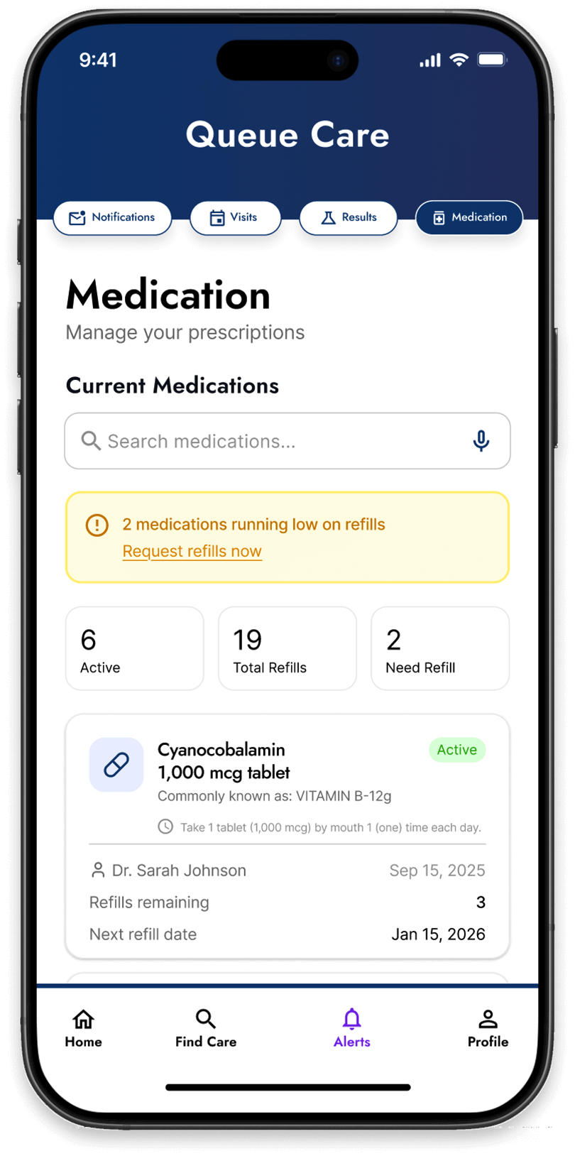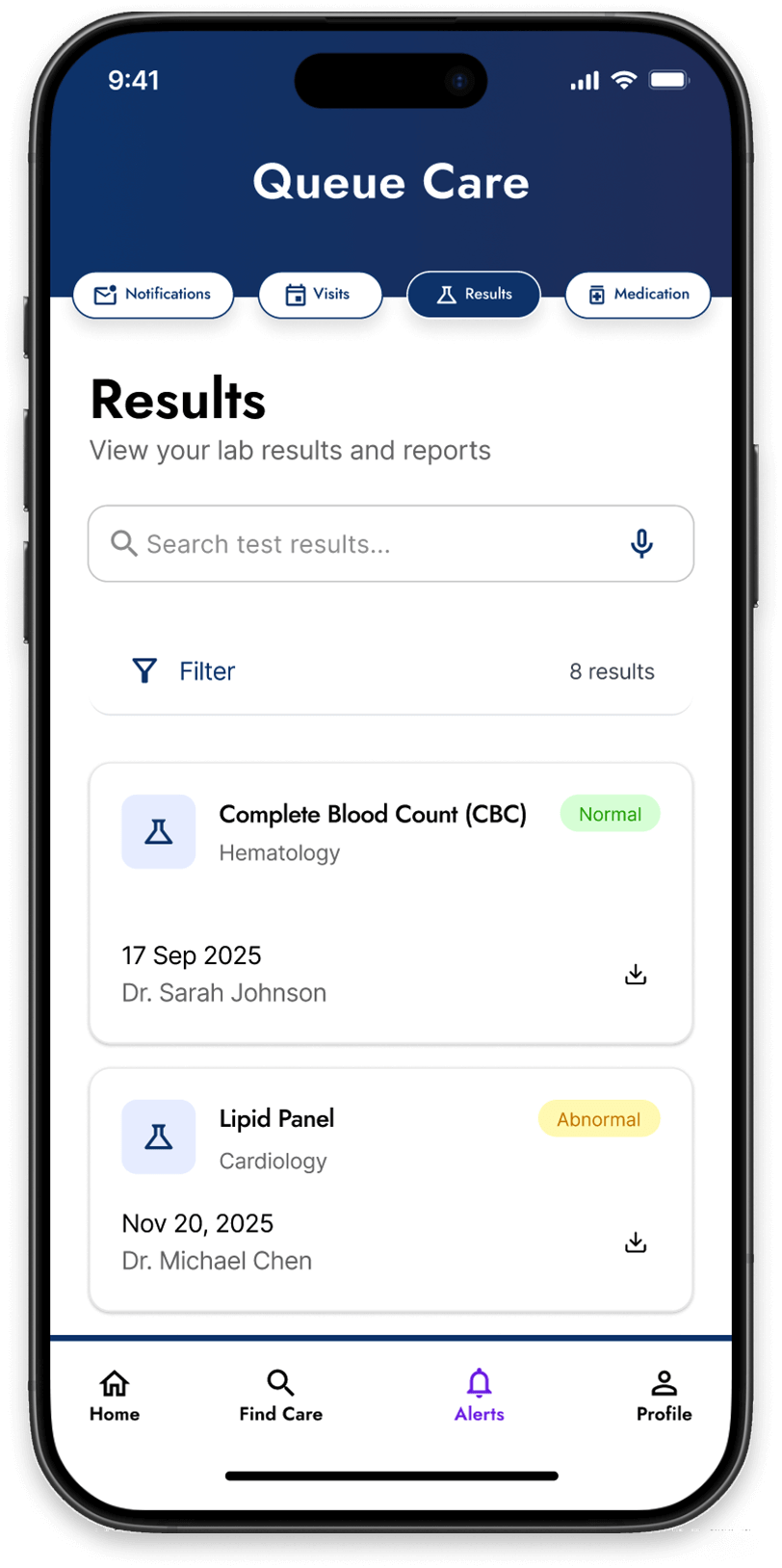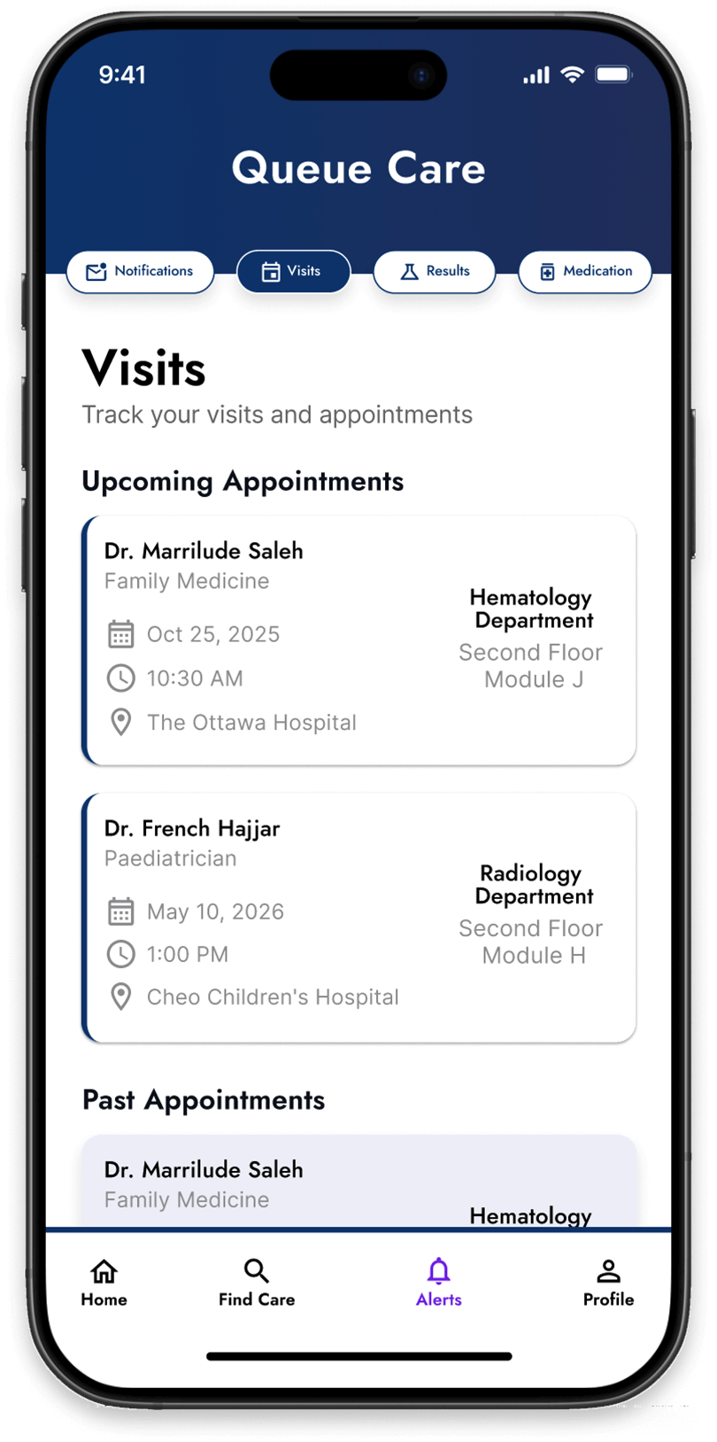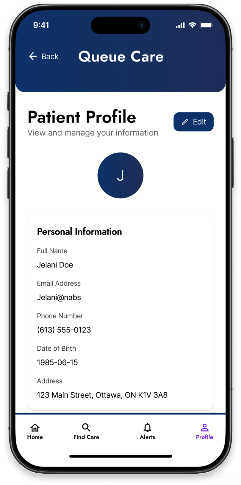 Queue Care is designed help Ontario residents navigate the healthcare system by providing real-time ER and urgent care wait times. It reduces patient frustration by offering queue tracking, live delay notifications, and digital pre-registration for faster check-ins. A built-in symptom checker guides users on whether to visit the ER, a clinic, or use Telehealth services.